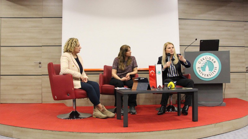 Üsküdar Üniversitesi İnsan ve Toplum Bilimleri Fakültesi Dekanı Prof. Dr. Deniz Ülke Arıboğan, 8 Mart'ın toplumsal açıdan önemine vurgu yaparak, “Kadınların karşılaştığı büyük bir istismar sorunu var. Kadınlar, erkek akademisyenlerin oluşturduğu baskılarla şekillenen bir kariyer yolculuğunda bulunuyor. Bu kariyer yolculuğunu avantaja çeviren kadınlar da var ancak çevremde gördüğüm kadarıyla, onlar kadın hareketine en fazla zararı veren, en az istismarcı erkekler kadar zararlı toksik bireyler” dedi. Prof. Dr. Deniz Ülke Arıboğan, günlük yaşamda karşılaştığı zorluklara da değinerek, “Evime gittiğimde çocuğumla ilgilenmek, hasta olduğunda başında beklemek, anne ve babam için koşuşturmak, misafirlerimle ilgilenmek, eşime eşlik etmek gibi sorumluluklarla karşılaşıyordum. Birçok farklı sorumlulukla başa çıkarken eşim işine gider gelirdi ve hayat onun için daha kolaydı. Çünkü bir gün de ‘çocukla ben ilgileneyim’ dediği olmuyordu. Bunları sorgulamadan yürümek zorunda kaldım. Yolunuz ne kadar engebeli ve zor olursa, antrenman kabiliyetiniz ve dayanıklılığınız da o kadar yüksek oluyor. Kadınlar olarak, aslında çok dayanıklı varlıklarız. Burada karşımızda oturan her kadının çok şanslı olduğunu düşünüyorum. Buralarda okuyabilmek, bu sohbetlere katılabilmek çok ayrıcalıklı. Bu koşullarda olmak için canını verebilecek birçok kadın var. Biz de bu imkânları daha geniş kitlelere ulaştırmak için bir misyoner gibi çalışmakla yükümlüyüz” şeklinde konuştu.