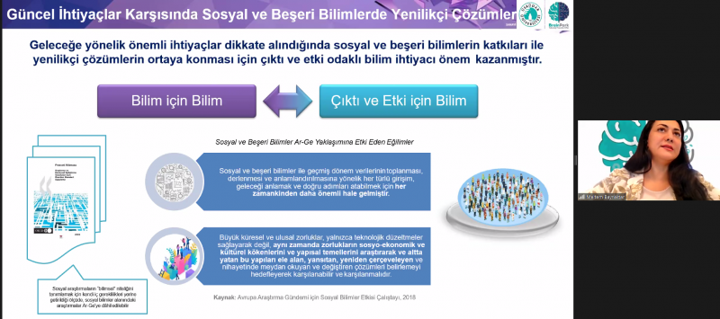 Eğitimin ilk bölümünde Proje Yöneticisi Meltem Bayraktar, TÜBİTAK projelerine ilişkin genel bir bilgilendirme sunumu yaptı. Ardından Horizon Europe programı hakkında da katılımcıları bilgilendiren Bayraktar, akademisyenler tarafından kendisine yöneltilen soruları cevaplandırdıktan sonra konuşmasını sonlandırdı.