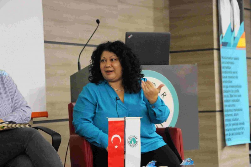 Sinemada ve medyada kadının ve erkeğin temsiliyetinin belirli sorunlar barındırdığını söyleyen İstinye Üniversitesi İletişim Fakültesi öğretim üyesi Doç. Dr. Aybike Serttaş, “Temsil konusu oldukça önemli. Medyada ve sinemada kimleri izliyor ve görüyoruz? Kimleri göremiyoruz? Gösterilmeyenler önem taşıyor. Örneğin kadın sadece ev içinde ve cinsel obje olarak gösteriliyor ya da kadınlar maddi varlıklara düşkün insanlar olarak yansıtılıyor. Bizim gülümseyerek hatırladığımız Yeşilçam filmlerinde hatta günümüz medyasında gördüklerimizin cinsiyetçilikle ilgili olduklarını görüyoruz. Bir de toplumsal cinsiyet var ama bu sadece kadın meselesi değil erkeklerle ilgili de bir mesele. Erkeğin rolleri de var. Ekran içinde yerleştirilen belirli profil ve bakış açıları söz konusu. Bunlar bize şu mesajı veriyor: Evet toplumsal cinsiyet rolleri var, kadının rolleri bu, erkeğin rolleri bu; kadın şöyle yapar erkek böyle yapar gibi. Biraz üstten bakıldığında sistemin işlemesi için büyük bir çaba olduğunu görüyorsunuz. Mevcut iktidarın sürdürülmesi ve sorgulanmaması istenen bir bakış açısı var. Kadın ve erkeğin rollerinden çok mevcut yapının bozulmaması ve mevcut gücün belli ellerde birikmesi ve belli ideolojilerin yaşaması için gerçekleşen bir süreç. Bu açıdan bakıldığında toplumsal cinsiyet problemleri bu sistem içinde sadece bir nokta. Tecimsel medya ile ilgili konuşulması gerekenler bunlar. Sadece Türkiye’de değil dünyadaki konular da bunlar” dedi.