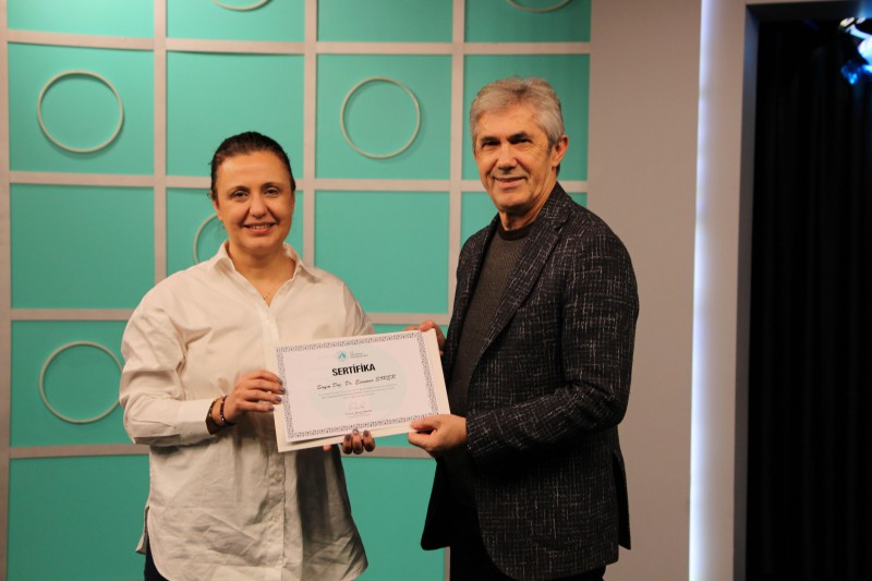 Atölye çalışması sonrası Üsküdar Üniversitesi Rektör Danışmanı ve Gazetecilik Bölüm Başkanı Prof. Dr. Süleyman İrvan, Doç. Dr. Esennur Sirer’e sertifika takdim etti. Etkinlikte Sirer, katılımcılara imzalı kitaplarını hediye etti. Atölye çalışması toplu fotoğraf çekimiyle sona erdi.