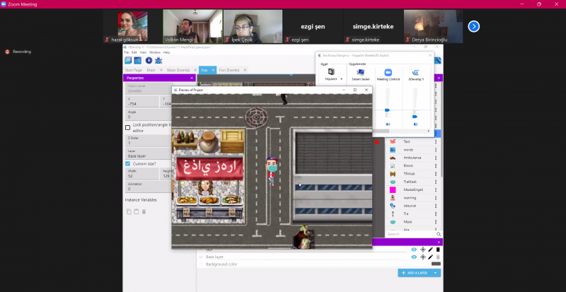 Kodsuz oyun tasarımı yapılabilen GDevelop ve Scratch adlı uygulamaları tanıtarak tasarlanan oyunları gösteren Öğr. Gör. Volkan Mengi, ‘‘GDevelop kodsuz bir şekilde oyun tasarlamamızı sağlıyor. Her türlü oyun olmasa da birçok oyun yapılabiliyor. Örneğin App Store’de gördüğümüz ilk 50 oyunun hepsi bu uygulamayla yapılabilir. Kodsuz olarak yapıldığı için bu durum oldukça kolaylaşıyor. Mesela Scratch adlı bir uygulama da var. Aslında tamamen çocukların kullanması için yapılmış. Bazı okullarda liseden bile önce öğretiyorlar. Küçük bir çocuğun çektiği tutorial (eğitim) videosu; basit şekilde elmaları sepetle toplama oyunu tasarlıyor. Bu programla da çok ileri oyunlar yapılıyor. GDevelop ile yapılmış oyunlara bakarsak hiç sınır yok, her türlü oyun yapılmış. Hayal gücüyle her türlü oyun yapılabilir. Gelecekte bu tarz programlarla üç boyutlu oyunlar da yapılabilecek. Bu işleri daha da kolaylaştıracak’’ şeklinde konuştu.