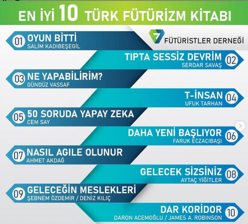 Fütürizm Derneği’nin belirlediği “En İyi 10 Yabancı Fütürizm Kitabı” listesinde ise sıralama şöyle: