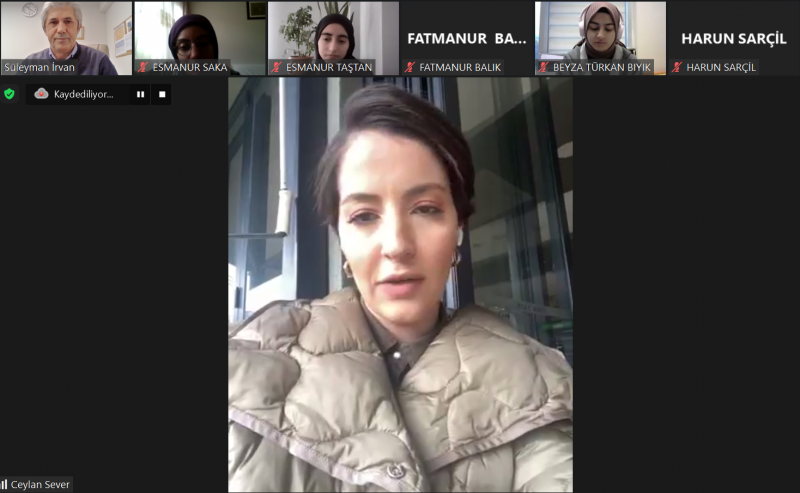 Prof. Dr. Süleyman İrvan, ilk soru olarak, “neden adliye muhabirliği?” diye sordu. Ceylan Sever, suç konusunun bütün ülkelerde zengin bir habercilik alanı olduğunu ifade etti ve sözlerini şöyle sürdürdü: “Ben hukuk dilini seviyorum. Öğrenciyken de bu alana ilgim vardı. Bu kadar insan tutuklandı, şöyle oldu böyle oldu, bu haberler nereden geliyor diye araştırdığımda bir adliye muhabirliği alanı olduğunu fark ettim öğrenciyken ve bu alanda ilerlemek istedim. Habertürk’e başladığımda oradaki müdürlerim de bana fırsat tanıdılar.”