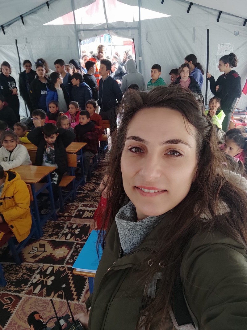 İlk olarak Hatay Samandağ’a geçtim. Dağ yollarından ulaştığımız bu ilçede bir kurtarma ekibinin enkaz başındaki çalışmasını izledim. Oraya vardığımda arabamızı durdurduğumuz ilk yer bir enkaz başıydı yani. Ben 1999 Gölcük depremini yaşayan bir çocuktum ve çok şükür Gölcük depremini travmalar yaşamadan atlattım. O yüzden bu enkaz başında durmak bana kolay görünmüştü, nasılsa daha önce de enkaz görmüştüm! Ama öyle olmadı, bir anda bir ses, ‘Sessiz olun!’ diye bağırdı ve bir düdük öttü. O an tüm sesler kesildi ve herkes nefesini tuttu. Ve o ses yine ‘Sesimi duyan var mı?’ diye bağırdı. O an saliseler içinde yaşadığım o duygu selini size nasıl anlatırım bilmiyorum. Birden tak tak tak bir demir sesi duyuldu. Herkes çığlık çığlığa, Allah’ım çok şükür ses geldi, evet biri var ve yaşıyor. Ama görevli, demirin rüzgardan dolayı çarpabileceğini söyledi ve ‘Sesimi duyuyorsan iki defa vur’ dedi. Ve o ses 2 defa daha vurdu. ‘Sesimi duyuyorsan 3 kere vur!’ Ve o ses 3 kere daha vurdu. O an ağlamaya başladım ve biz dışarda nefes alırken, o canımız enkaz altında belki de nefes alabilmesi için küçük bir alana sahip, biz montlarımızla ama o canımız belki de tir tir titriyor betonların arasında. Acaba çabucak çıkarılacak mı? Çok üşüyor mu? Çok korkmuştur, kim bilir yalnız da değildir diye diye  o enkaz başında saatler geçirdim. Sonu mutlu bitti çok şükür. O canımız enkaz altında, biz enkaz başında, yüreklerimiz darmaduman, acı ve sevinçle dolu hislerle devam ettik yollarımıza.