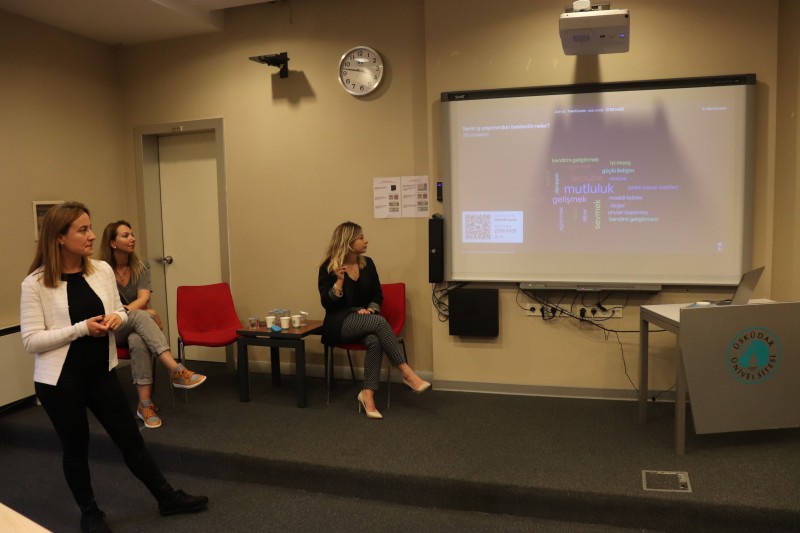 Üsküdar Üniversitesi’nin genç iletişimcilerinin düzenlediği etkinliğe İletişim Stratejileri Yöneticisi Melis Kabadayı, Eğitim Teknolojileri ve Yetkinlik Gelişim Müdürü Diğdem Dökmeci ve Yetkinlik Gelişim Yöneticisi Neşe Olurdağ Efli konuk oldu. Gelişen teknolojilerle birlikte değişen iş fırsatları ve sundukları eğitimler hakkında konuşma gerçekleştirdiler.