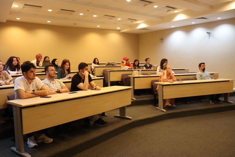 Sundukları iş fırsatlarını anlatan ve “Senin farkın Akbank’ın farkı” başlığıyla çektikleri tanıtım filmini izleterek konuşmasına başlayan İletişim Stratejileri Yöneticisi Melis Kabadayı, “Akbank olarak ‘İşveren Markası’ dediğimiz; potansiyel adaylara, Akbank’ın rengine, istediğiniz şirkete hizmet etmenizi sağlayan noktada bu kelime yürürlüğe giriyor. Firmalar bunları neden yapıyor? Şirket içerisinde dönemlerin değiştiği bir süreçten geçiyoruz. İyi ve kaliteli eğitim alan çalışanlar iş veren açısından oldukça kıymetli. Takdir edersiniz ki çok da kısıtlı. Çünkü her bir kuruluşun farklılıkları var ve bu farklılıklara adapte olabilecek adayları çekmek bizim görevimiz oldu. İşveren markası dediğimizde İBP kapsamıyla birlikte çok fazla karşılaşıyoruz. Burada ‘Senin farkın Akbank’ın farkı’ dediğimiz yani çalışan odaklı konularımızı göz önünde bulundurduğumuzda İBP’ye hizmet ediyor oluyoruz. Çalışanlara sağlanan iş ve yaşam dengesini sunmuş oluyoruz. Çalışanın kapasitesini arttırmaya yönelik çalışmalar yapıyoruz. Bu izlettiğimiz filmdeki çalışanlar bizim arkadaşlarımız ve gerçekten bu iş fırsatlarını hayatlarına geçiren insanlar. Bizim gerçekten bir girişimcilik programımız var. Akbank Plus desteği ve girişimcilik programıyla birlikte istediği hayata kavuşan arkadaşımız var. Biz bir kariyer yolculuğuna çıkıyoruz ama bunun nasıl dönüşeceğini bilmiyoruz. Ben bir iş görüşmesinde olsam ‘Ben buraya başlıyorum ama önümüzdeki dönemde bir kariyer fırsatında beni destekliyor musunuz?’ diye sorarım. Bir firmanın sizi desteklemesi gerçekten çok önemli. Fırsatlarını ve karakterinize uygun olmasını değerlendirin. Bunların hepsi de başta bahsettiğimiz işveren markasını oluşturuyor” ifadelerini kullandı. Sonrasında Genç İletişimciler Kulübü tarafından hazırlanan sorularla öğrencilerin merak ettiği konulara değinildi.