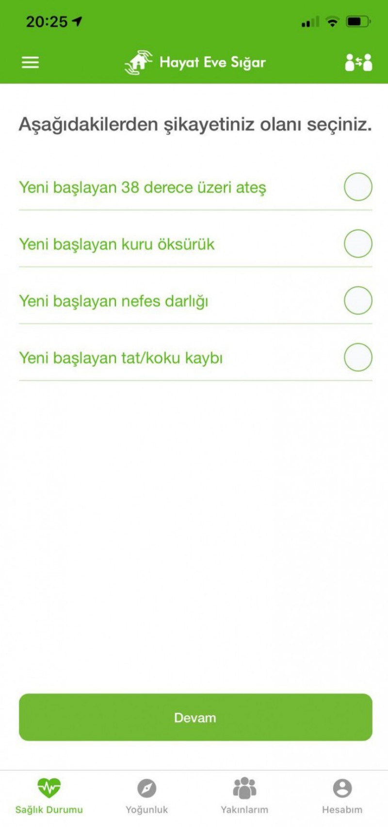 Bireyler istediği sıklıkta güncel veriler esas alınarak hazırlanmış olan COVID-19 testini doldurabiliyor ve sağlık durumu hakkında bilgi alabiliyor. Kullanıcılar, kendilerine yöneltilen sağlık soruları cevaplandırarak Koronavirüs şüphesi taşıyıp taşımadığını anlayabiliyor. Uygulama, hastalık şüphesi bulunması halinde bireylerin neler yapması gerektiğini söyleyerek onları yönlendiriyor ve olası bir vaka durumunda hangi numarayı arayacaklarını da gösteriyor.