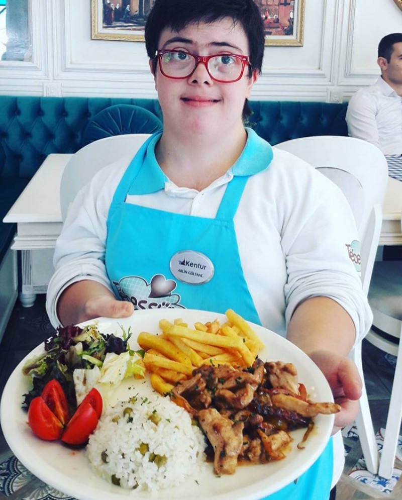 Arlin Gültane 28 yaşında. 21 Mart 2016 (Dünya Down Sendromlular Günü)' dan beri burada garson olarak çalışıyor. Daha önce başka yerlerde de çalıştığını anlatan Gültane, günlerinin yoğun geçtiğini ama kendisinin bu durumdan zevk aldığını belirtti. Tebessüm Kahve'nin sigortalı ve maaşlı bir personeli olduğuna değinirken, kazandığı maaşıyla hem geleceği için yatırım yaptığını, hem de ailesine yardım ettiğini söyledi.