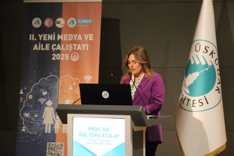 Çalıştayın açılış konuşmasını yapan İletişim Fakültesi Dekanı Prof. Dr. Gül Esra Atalay, II. Yeni Medya ve Aile Çalıştayı’nın ilk etkinlikten elde edilen çıktılarla daha kapsamlı bir tartışma zemini sunduğunu belirterek, aile yapısının dijital dönüşümle birlikte görünmez sınavlar verdiğini söyledi. Atalay, “Eşler arası iletişimin değişmesi, çocukların dijital dünyada kaybolup yeniden şekillenmesi, aile değerlerinin ekranlarla birlikte dönüşmesi ve yapay zekânın hayatın her alanına sirayet etmesi büyük bir dönüşümü beraberinde getiriyor. Bugün bu meseleye sadece teknoloji değil gelecek açısından bakıyoruz. 2019’da sessizce evlerimize giren dijitalleşme rüzgârının 2025’te adeta bir fırtınaya döndüğünü görüyoruz. Aile artık dört duvar arasında yaşanan bir yapı değil; dijital dünyanın tam ortasında hem güçlenen hem zorlanan bir kurum. Bu nedenle burada üreteceğimiz ortak akıl ailelerin gerçek yaşamlarına dokunacak bir değer taşıyor” dedi.