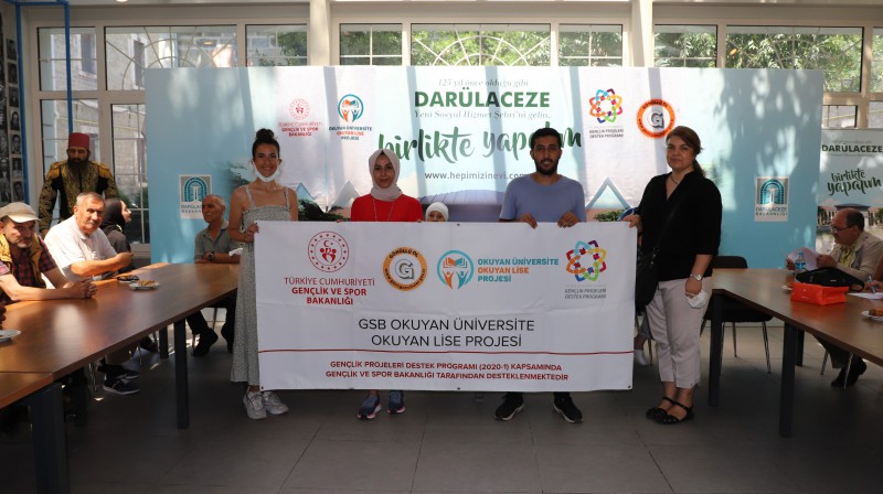 Genç bireylerin kendi potansiyellerini daha ileriye taşımaları için bir model olarak geliştirilen Okuyan Üniversite-Okuyan Lise projesinin gönüllülük faaliyetleri kapsamında planlanan “Büyüklerimize Kitap Okuma” etkinliği 29 Temmuz’da Darülaceze’de gerçekleştirildi. Proje katılımcısı öğrencilerden Büşra Akar’ın Sait Faik’ten “Meserret Oteli”, Kerem Kuriş’in ise “Bir Karpuz Sergisi” öyküsünü okuduğu etkinlikte, Darülaceze sakini büyükler de “okuma” üzerine görüşlerini ve anılarını paylaştı. Proje katılımcısı gençlerin bir bölümü ise pandemi koşulları nedeniyle toplantıya çevrimiçi olarak katıldı.