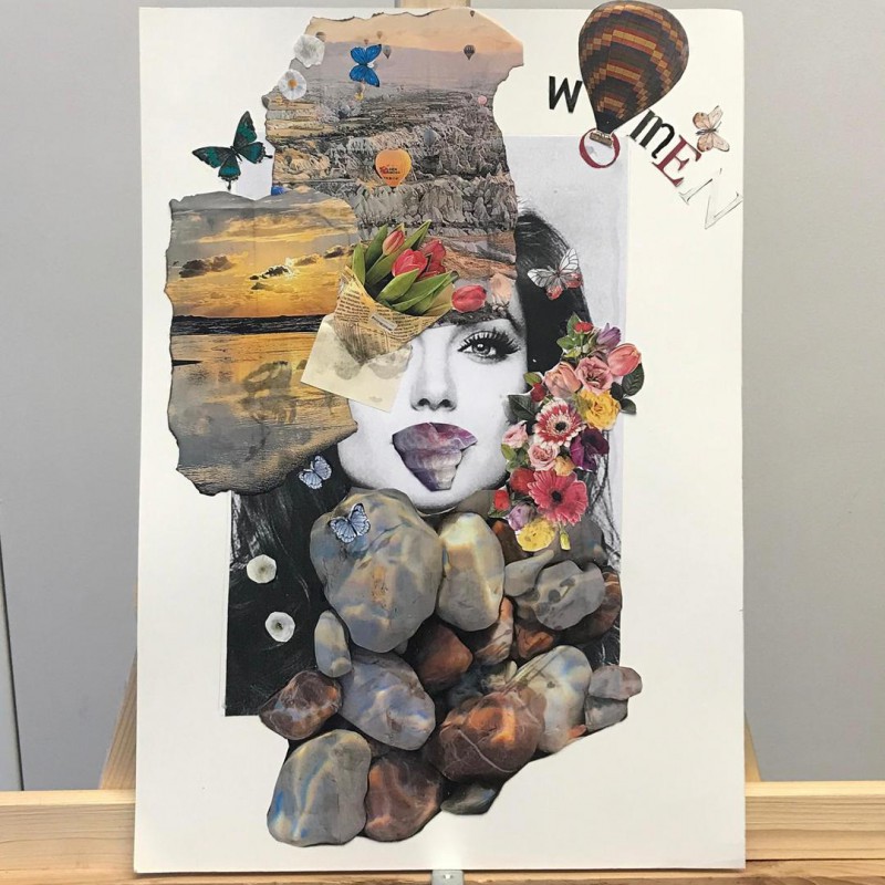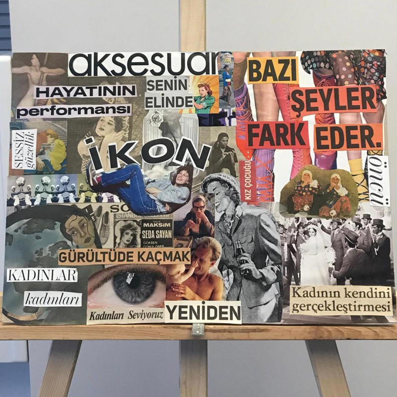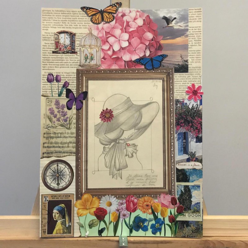 2024 Bahar döneminde GİT106 Temel Tasarım dersi çalışmaları kapsamında ortaya çıkan Bahar 1. sınıf kolaj sergisi; öğrencilerin serbest kolaj çalışmaları, gazete, afiş, etiket, fotoğraf, ayna, kumaş gibi çeşitli malzemelerin belirli bir anlatım aktaracak şekilde kompozisyona yerleştirilmelerinden meydana geliyor.