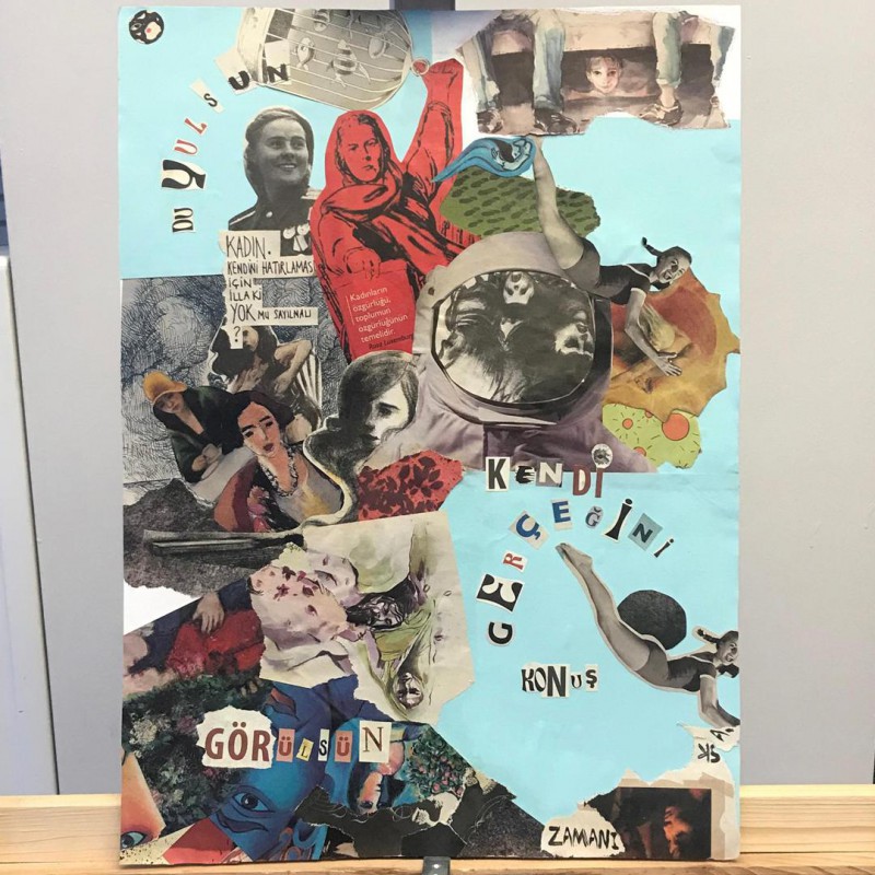 Sergi, öğrencilerin malzemeleri tanımalarına ve farklı malzemelerin birlikte kullanımıyla nasıl kompozisyon oluşturduklarını keşfetmelerine yardımcı oldu. Çalışmalar kapsamında, yalnızca 2 boyutlu değil, 3 boyutlu çalışmalar da oluşturuldu. Bu nedenle bazı çalışmalarda kompozisyonun derinliğinde farklılıklar oluşturuldu.Bu bağlamda ders sürecinde malzeme tanıma ve farklı malzemelerle kompozisyon oluşturma üzerine çalışmalar gerçekleştirildi, öğrencilere farklı bakış açıları kazandırılmaya çalışıldı.