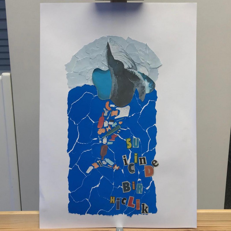 Öğrencilerin malzemeleri tanımalarına ve farklı malzemelerin birlikte kullanımıyla nasıl kompozisyon oluşturduklarını keşfetmelerine yardımcı olan sergi, yalnızca 2 boyutlu değil aynı zamanda 3 boyutlu çalışmalardan oluşturuldu.