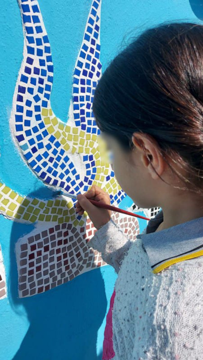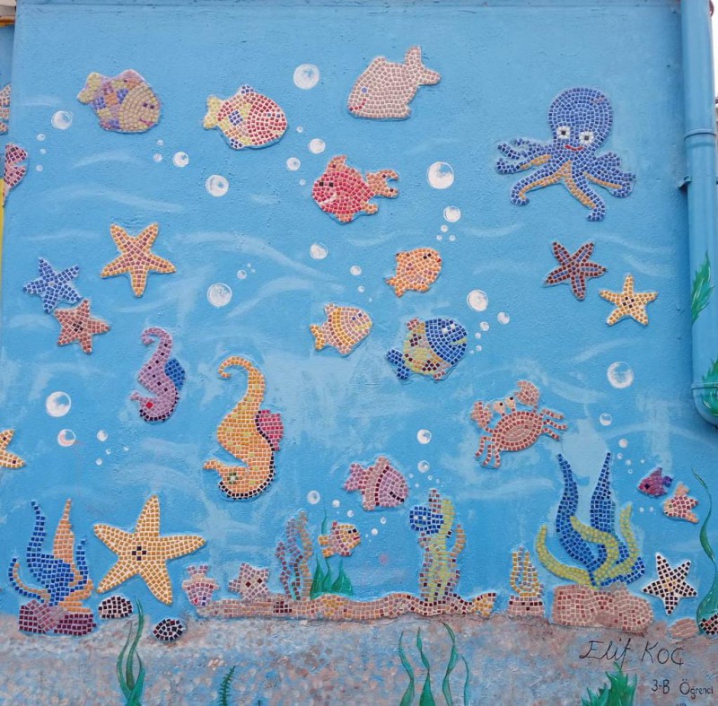 Okul duvarlarına mozaik çalışması yapmak istediklerini belirttiler ve bu iş böyle başladı. Çocuklarla beraber mozaik taşlarını sıralayarak tutkalladık. Bu sırada İstanbul Cerrahpaşa Üniversitesi'nden Öğretim Görevlisi Süreyya Oskay, Ressam Aysun Neşeli ve velilerimiz başta olmak üzere çok büyük bir ekip olduk.Okul duvarlarımızda gördüğünüz mozaikler çocukların tek tek parmaklarıyla yan yana koyduğu küçük taşlardan oluşuyor. Ekibimizle birlikte çocuklarımızın kalıcı eserlerini okul duvarlarına işlemiş olduk.