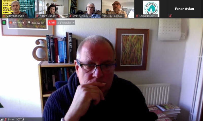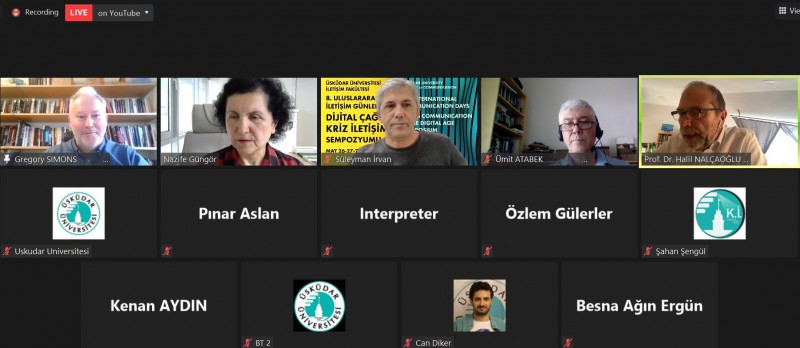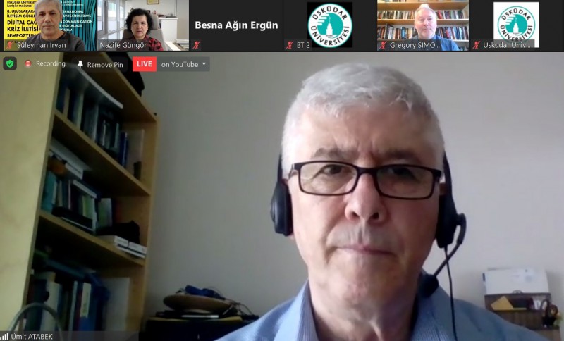 Üsküdar Üniversitesi İletişim Fakültesi tarafından 26-28 Mayıs tarihleri arasında Sekizinci Uluslararası İletişim Günleri kapsamında düzenlenen Dijital Çağda Kriz İletişimi Sempozyumu'nun ikinci gününde davetli konuşmacılar oturumu gerçekleştirildi. İstanbul Bilgi Üniversitesi'nden Prof. Dr. Halil Nalçaoğlu'nun moderatörlüğünde davetli konuşmacılar Doç. Dr. Gregory Simons, Prof. Dr. Ümit Atabek ve Prof. Dr. Simon Cottle birer konuştu yaptı.