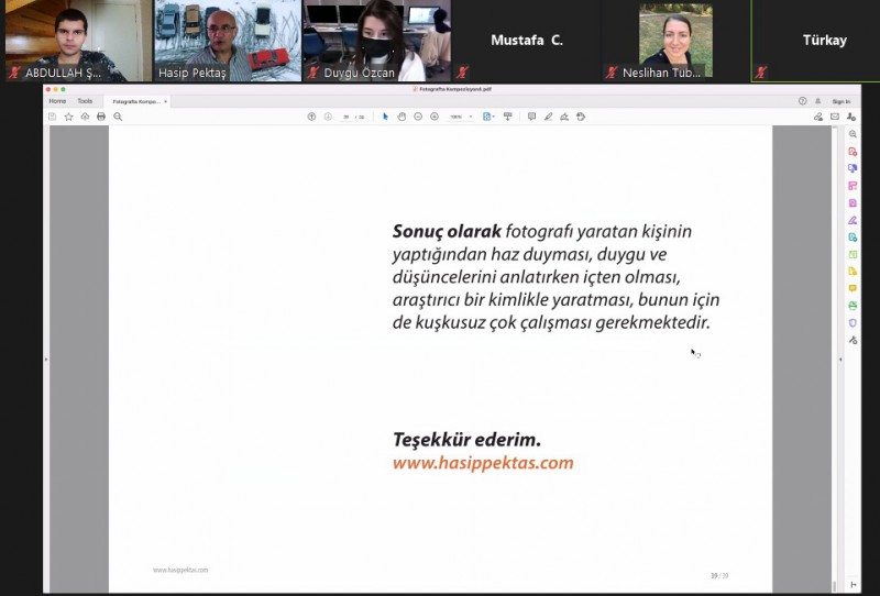 Fotoğrafı oluşturan mekanın, hareketin ve her şeyin birbiriyle bağlantılı olması gerektiğine değinen Prof. Dr. Hasip Pektaş, “Bir sanat yapıtının evrensel boyutlara ulaşabilmesi, onun anlatım gücüne ve biçimsel yapısına bağlıdır. Diğer sanat dallarında olduğu gibi fotoğrafta da bu seviyelere ulaşmak istiyorsak belirli kompozisyon ilkelerine uymamız gerekiyor. Onlardan bir tanesi de doğru kompozisyon. Bu da fotoğrafı oluşturan ögelerin yeri, büyüklüğü, hareketi, birbiriyle ilişkisi ile olur. Başarılı bir kompozisyon için kural yoktur. Reçete veremeyiz ama bazı ipuçları da verebiliriz. Bu dengeli bir kompozisyonsa özgünlük özelliğini de taşır. İçeriğin ve mesajın belirli bir şekilde verilmesini belirginlik ve yalınlık belirler” ifadelerini kullandı.