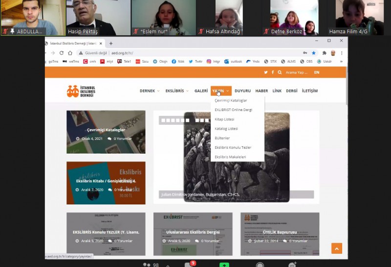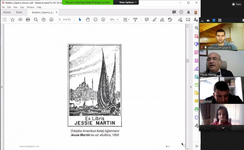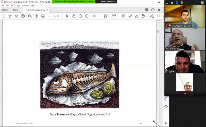 Üsküdar Üniversitesi ve Emrullah Turanlı İlkokulu arasında yapılan Tasarım Beceri Atölyeleri Akademik İşbirliği çerçevesinde, Çizgi Film ve Animasyon Bölüm Başkanı Prof. Dr. Hasip Pektaş, ekslibris konusunda çevrimiçi bir seminer vererek katılımcılarla bir çalıştay gerçekleştirdi. Konuşmasına kendisini tanıtarak başlayan Pektaş, “Ben Üsküdar Üniversitesi İletişim Fakültesi Çizgi Film ve Animasyon Bölümü başkanıyım. Fakat benim asıl branşım görsel iletişim ve tasarımdır. Ben Görsel İletişim ve Tasarım bölümünde ders veriyorum ama Çizgi Film ve Animasyon Bölümü'nde de idarecilik yapıyorum. Ekslibrisi 37 yaşında tesadüfen öğrendim ama 80’li yıllardan beri ekslibrisin tanıtılması için yoğun bir çaba sarf ediyorum. Çok sayıda okula seminer verdim ve en çok da sizin yaşınızdakilere seminer vermekten ve konuşmalar düzenlekten keyif aldım. Siz; içten, samimi ve önyargıdan uzak çalışmalar yapıyorsunuz. Güzel de işler çıkıyor. Bugün inşallah sizinle bir workshop yani atölye çalışması yapacağız” ifadelerini kullandı.