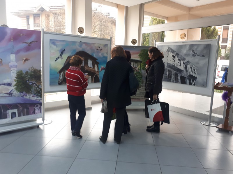 8-14 Mart tarihleri arasında sergilenen ve ağırlıklı olarak Üsküdar'ın tarihi evlerinin resmedildiği birbirinden güzel 24 eser; camiiler, kiliseler ve sinagogların birbirleriyle komşu olmasıyla önemli bir hoşgörü merkezi olan "Altın Şehir" Üsküdar'ın geçmişi ve bugünü arasında köprü görevi görüyor.