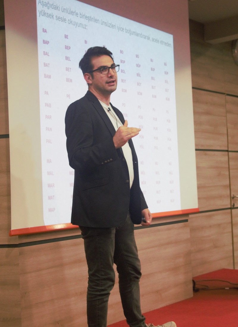 Nefes eğitiminin çok önemli olduğunu vurgulayarak katılımcılar ile uygulamalı nefes eğitimi yapan Mehmet Çelikyay, ”Nefesin üzerinde durmayı çok önemsiyorum. Bir diğer unsur durak yapmaktır. Konuşurken, kimi insanlar noktalama işareti yokmuş gibi tek düze konuşur. Ama biz konuşma içerisinde virgül varmış gibi yarım nefes alıyoruz. Hava bizim için bir benzin, duraklar da öyle. Konuşurken nefesimizi kontrol edemezsek, vurgu ve tonlama kayar. Nefes tükendikçe zihin kelimeleri o nefese yetiştirmeye çalışıyor. Böylece hece, harf yutma, cümle sonunu yuvarlama, hızlı konuşma ortaya çıkıyor. O yüzden gördüğünüz her fırsatta durağınızı yapın. Duraklar mola yeri gibidir“ dedi.