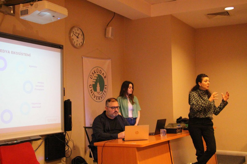 Üsküdar Üniversitesi İletişim Fakültesi Reklamcılık Bölümü’nün düzenlediği “Doğru tüketicinin izini sürmek: Medya planlamasında yolculuk” başlıklı etkinlik gerçekleşti. Etkinliğe, Reklamcılık Bölüm Başkanı Prof. Dr. Özgül Dağlı, Reklamcılık Bölümü Öğretim Üyesi Doç. Dr. Cihan Becan, Media Republic kurucusu ve CEO Tuba Çırpıcı ile Veysel Erbaş ve Elif Sarıışık katılım sağladı.