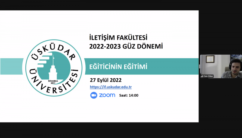 Üsküdar Üniversitesi İletişim Fakültesi Eğiticinin Eğitimi Toplantısı çevrim içi olarak yapıldı. İletişim Fakültesi Dekanı Prof. Dr. Nazife Güngör’ün konuşmasıyla açılan toplantıda, fakülte akademisyenlerinin bilgilendirilmesi ve yeni eğitim öğretim dönemine gerekli uyumun sağlanması amaçlandı. Toplantıya, Üsküdar Üniversitesi Rektör Danışmanı ve İnsan Kaynakları Direktörü Serdar Karagöz ile Kalite Kurulu temsilcileri de katıldı.
