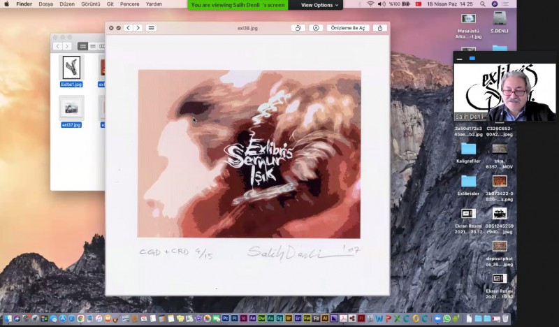 Dr. Öğr. Üyesi Salih Denli ise ekslibris yapma sürecinden başlayarak kullanım amaclarından bahsetti. Denli, “Rahmetli Bülent Ecevit’e özel bir çalışma başlatmıştım. Ulaştırma hakkında pek fazla bilgim yok ama çok uğraşmıştık. Sonra bir öğrencimizin çektiği fotoğrafı detayları ile ele almıştım. Daha sonrasında ‘Ekslibris Tasarımında Tipografi ve Kalibrafi Kullanımının Tipografik ve Kalibratik Ekslibris Uygulamaları’ adlı çalışmamı yapmıştım. Sonra bir sipariş almıştım. Bu benim ilk siparişlerimdendi. Koray Özal’dandı. Kendisi diş doktoruydu. Kendisine ait bir ekslibris yapmamı istemişti. Böyle bir çalışma ile kendisini memnun etmiştik. Hasip hocaya yaptığım ve Hasip hocanın da beğendiği bir çalışma vardı. Her yerde de paylaşılmıştı. Sonra yine Fatoş Akar, yine bir dil eğitimcisi hanımefendi vardı. Daha çok bir spontane olmuştu. Bu kısa bildirilerimden sonra ayrıntılara fazla girmeden tezimi sunmak istiyorum. Bu çalışmayı 2004 yılında tamamlamıştık. Hasip hocaya da bazı şeyleri önermiştim. O da beğenmişti. Özellikle tezin bazı kısımları hakkında sizi bilgilendirmek istiyorum. Tipografi dediğim zaman ekslibriste çok önemli bir yere sahip olduğunu vurgulamak gerekir. Tipografi, ekslibriste öyle bir yere varıyor ki, bütün sanat dalları ile ilişkilendirilebiliyor. Bu yüzdendir ki bu çalışmaların birer ufak spiral çalışmalar olduğunu da belirtmek isterim. Genel anlamda bir çalışma yapmıştık. Ekslibris ve Tipografi ile bağlantılı yapmıştık. Özellikle resimsel biçimleri bir arada tutan ekslibris, yazı da onun içerisinde kompozisyonel hal almıştır. Sanatsal hareketlerin, değişen ve birleşen ekslibris anlayışlarına dokunuşları da malumdur. Klasik ekslibrisler çok yaygındır. Özellikle bir dönem çok yapılmış, araştırmalarımızda kitabın aidiyet konusunun önemsendiği dönemlerde çok yapıldığı görülüyor. Ekslibrisin okunaklı olması lazım. O proje okunmadığı zaman bir plastik unsur olarak görülür. Ancak ekslibrisin bir amacı da sahibini belirtmesidir. Onun ismini yansıtmasıdır. Sonra bazı örneklerden bahsetmek istiyorum. Çalışmalarımın bazıları amatör olarak yapılan çalışmalardı. Mesela Nazım Hikmet’e ekslibris yapılmış. Bunu Hasip hocam ile geçmiş zamanlarımızda konuşmuştuk. Ölen kişiye ekslibris yapılmaz. Dolayısıyla yaşayan kişilere ekslibris yapılır. Fakat bu ekslibris anı anlamında olabilir. Ekslibris, kendi doğasına aidiyet bildiren, şahsı ilgilendiren son derece tasarımsal ürünlerdir. Diğer ürünlerde olduğu gibi tek başına ele alınmaması gereken bir yapıttır. Dolayısıyla bir takım sosyal mesajlar da verilebilir. Fakat dediğim gibi ekslibrisin sadece kitap aidiyet belgesi olarak ele alınmaması gerektiğini de vurgulamak isterim” dedi.