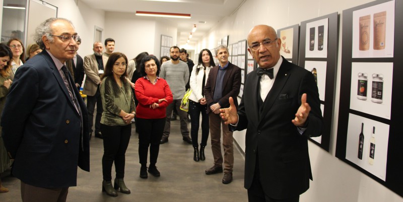 Görsel İletişim Tasarımı Bölümü öğrencilerinin meslek hayatına atılmaları için gerekli derslerin verildiğini belirten Prof. Dr. Hasip Pektaş, “Görsel İletişim Tasarımı Bölümü ikinci sınıf öğrencileri, hayali bir marka yerine var olan ve gereksinimi olan markalara alternatif tasarımlar yaptılar. Marka sahibi ile ön görüşme yapıp aldıkları bilgiler doğrultusunda amblem, logotype, antetli kağıt, zarf, kartvizit, fatura ve dosya çözüm önerileri ürettiler. Bazı öğrenci tasarımlarının kabul edilip uygulanması, onların mutlu olmalarını ve özgüven kazanmalarını sağladı. Böylece tasarım dünyasının ilk basamaklarına adım attılar. Dördüncü sınıf öğrencileri ise ürünün adı ve içinde bulunduğu ambalajın kendine özgü bir biçimde tasarlanmasını gerçekleştirdiler. Öğrenciler, ambalaj tasarımı, üretimi, markaların ambalaj stratejileri ve pazarlamada ambalajın önemi hakkında bilgi edindiler. Ürün markası oluşturmada deneyim kazandılar. Bu sergide ürün ambalajları, etiketler ve alışveriş poşetleri gibi iki ve üç boyutlu tasarım uygulamaları yer alıyor. Çalışmalarını yapan öğrencilerimizin üç tanesi çalışmalarını kurumsal firmalara sattılar” ifadelerini kullandı.
