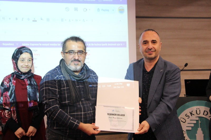 Üsküdar Üniversitesi Güney Yerleşke Fuat Sezgin Konferans Salonu'nda düzenlenen “Adobe Generative AI & Adobe Express ile Tasarım Dünyasında Yapay Zekâ Çağı” etkinliğine Adobe Türkiye Teknik Satış Yöneticisi Niyazi Yıldırım ve Teknik Destek Uzmanı Aryen Hemvatan konuk olarak katıldı. Etkinlikte, öğrencilerle Adobe programlarının yenilikleri ve yapay zekânın tasarım alanındaki kullanımına dair bilgiler paylaşıldı.
