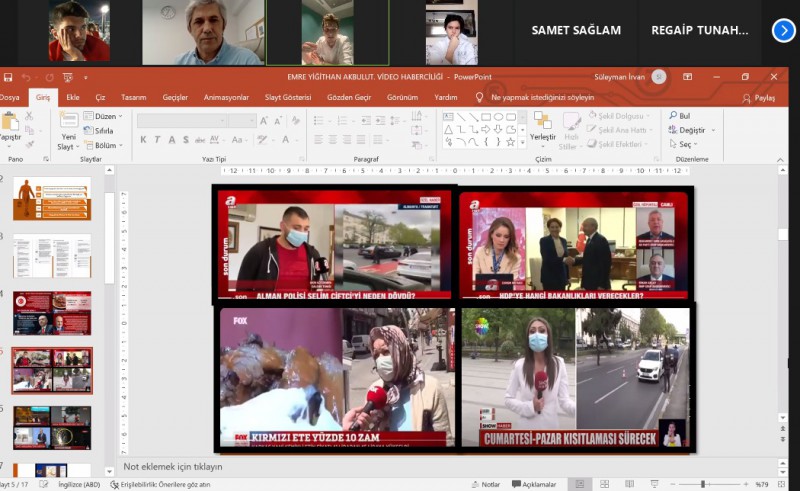 Çevrim içi olarak düzenlenen söyleşide video haberciliğinin detaylarına değinen Emre Yiğithan Akbulut, "Haberi bir seslendirmen okur ve haberi o şekilde yayınlarsınız. Haberleri grafik aracılığıyla kullanabilirsiniz. Haberi görsel anlamda canlı tutmanız gerekiyor. Örneğin bir öğrenci arkadaşımız, Üsküdar’daki herhangi bir pazara gitti ve oradaki karpuz fiyatlarını araştırıyor. Halkın tepkisini de o fiyatlara göre ölçmeye çalışıyor. Anons çeker ve röportaj yapar. Röportaj yaptıktan sonra fiyat aralığı yazar. Haldeki fiyatı ve pazardaki fiyatı grafikler ile karşılaştırarak bize kolaylık sağlayabilir. Sözlü olarak anlatmakta zorlanacağımız şeyleri grafikler aracılığı ile rahat bir şekilde gösterebiliriz. Bizim kelebek formatı dediğimiz bir format var. Bu sadece televizyon kanallarında kullanılmıyor. Sosyal medyada da kullanılan bir format bu. Kelebek formatında muhabir vardır ve yanında da konunun uzmanı olan kişi bulunur. Pencere dediğimiz olayı biz 2’ye ya da 3’e böleriz. Örneğin, bir tarafta spiker bir tarafta uzman olur. Röportajdaki bilgiyi desteklemek için olayla ilgili görüntüyü veririz. Röportaja hangi görüntü uygunsa onu bölünmüş ekranda veririz. Bu da bizim insanımızda izleyince algıyı pekiştiriyor. Bir kişi televizyonu açtığında tek başına bir adamı izlemek istemez. Hangi haber kanalını açarsanız açın mutlaka kelebek formatı vardır. Bu kelebek yöntemi montajla da yapılabiliyor. Burada benim de içinde bulunduğum bir reji ekibi var. Onun içeriğini hazırlayan, her şeyinin onayını alan bir yönetmen var. Herkesin görevi farklıdır. Amaç yayınları bölüşmek ve birleştirmektir. Görüntüler tamamen haberi üreten kişinin isteğine bağlı olarak değişebilir" ifadelerini kullandı.