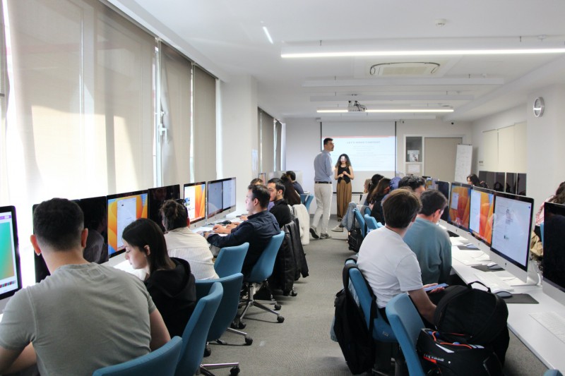 Eda Delibaş’ın katılımıyla gerçekleşen derste yapay zekâ uygulamaları ele alındı. Öğrenciler, ders kapsamında yapay zekâ araçlarını uygulamalı olarak kullanarak brief doğrultusunda bir marka için reklam fikirleri paylaştı ve üretim yaptı.