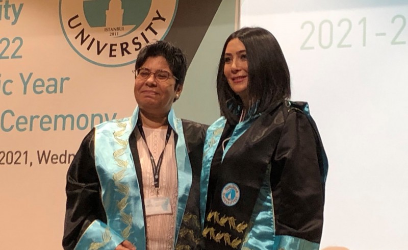 Akademik yükseltme alan Üsküdar İletişimli akademiyenler cübbelerini giydi