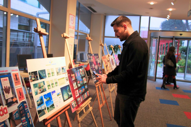 Reklamcılık Bölümü öğrencilerinin eserlerinden oluşan sergide; basılı materyallerden dijital tasarımlara, açık hava uygulamalarından sosyal medya içeriklerine kadar birçok farklı mecra için hazırlanan çalışmalar bir arada yer alıyor. Ziyaretçiler, öğrencilerin reklam fikrini farklı platformlara nasıl uyarladığını inceleme fırsatı buluyor.