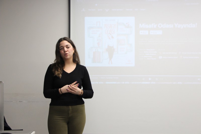 Etkinlikte konuşan Podbee’nin yaratıcı yapımcısı Gülşah Dim, podcastlerin başarısında hikâye anlatımının kritik bir rol oynadığını vurguladı. Gülşah Dim konuşmasında şunları söyledi: “Podcastlerin en güçlü yanı, görsellik olmadan hayal gücünü harekete geçirmesidir. Dinleyiciyle doğrudan bir bağ kurabilmek için güçlü bir hikâye anlatımına ihtiyaç var. Hikâye anlatımı, bir podcastin ruhunu oluşturur. Bu yüzden, format seçiminden senaryo yazımına, ses efektlerinden müzik kullanımına kadar her detay özenle düşünülmeli. Örneğin, bir hikâye anlatımı podcastinde, dinleyiciyi girişten itibaren atmosferin içine çekmelisiniz. Hikâye, onların kulaklarında canlanmalı ve gerçek bir deneyime dönüşmeli”. Gülşah Dim, ses tasarımı ve müzik seçimlerinin hikâye anlatımındaki etkisini şu sözlerle vurguladı: “Ses tasarımı ve müzik, dinleyicinin o hikâyeyi daha derinlemesine hissetmesini sağlar. Müzik seçimleri, atmosferi destekleyerek dinleyiciyi hikâyeye daha fazla çekebilir. Örneğin, bir vampir hikayesi anlatıyorsak, karanlık ve gizemli müzikler seçmek, o atmosferi güçlendirecektir. Ancak fazla abartılı ses efektlerinden kaçmak gerekir. Ses tasarımı, hikâye anlatımının. önemli bir parçasıdır. Bunu doğru kullandığınızda, dinleyici o dünyayı gerçekten duyumsar”.