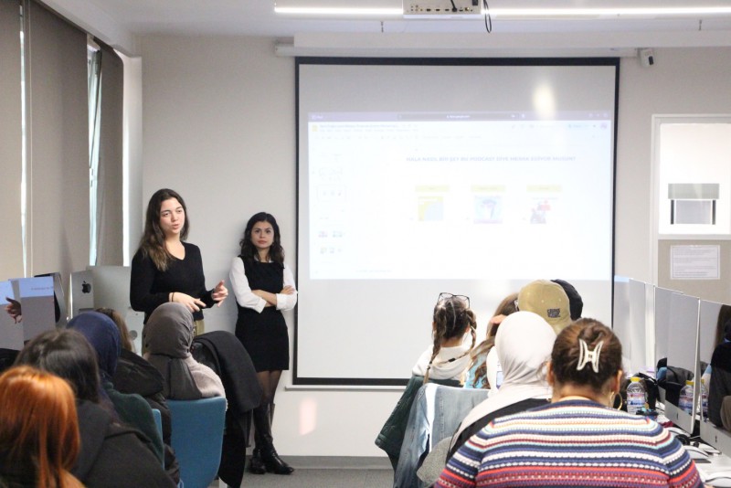 Üsküdar Üniversitesi İletişim Fakültesi’nde Yeni Medya ve İletişim Bölümü’nün düzenlediği “Podcast Ekosistemi ve Podbee” etkinliği gerçekleşti. Etkinliğe Podbee ekibinden konuk olarak katılan Hazal Tokatlıoğlu ve Gülşah Dim, podcast üretimi ve tüketimi üzerine kapsamlı sunumlar gerçekleştirirken, Podbee platformunun sektöre sunduğu yenilikler ve katkıları anlattılar.