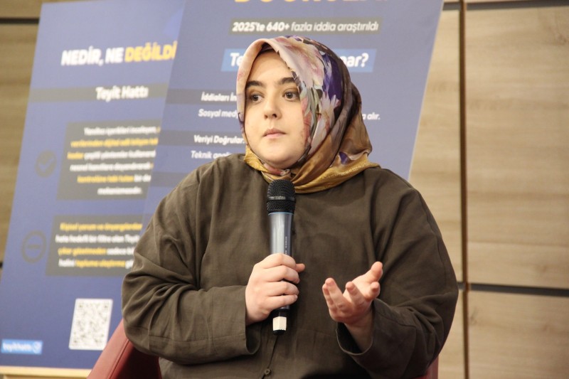 Dezenformasyon yöntemlerine de değinen Ömer Faruk Görçin, yanlış bilginin çoğu zaman tamamen yeni içerikler üretmek yerine mevcut içerikleri bağlamından kopararak yayıldığını söyledi. Teyit süreçlerinde görsel doğrulama ve açık kaynak araştırmalarının büyük önem taşıdığını vurgulayan Görçin, kullanıcıların gördükleri her içeriğe hemen inanmaması gerektiğini dile getirdi. “Dezenformasyon çoğu zaman tümüyle yeni bir içerik üretmez. Var olan bir görüntü farklı bir olayla ilişkilendirilerek yeniden dolaşıma sokulabilir. Bu nedenle bir içeriğin ne zaman paylaşıldığına, ilk kaynağına ve bağlamına bakmak gerekiyor. Sosyal medyada gördüğümüz her içerik doğru olmayabilir. Bu yüzden kullanıcıların gördükleri içeriklere karşı daha şüpheci ve dikkatli olması gerekiyor” dedi.