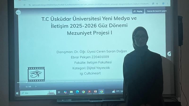 Üsküdar Üniversitesi İletişim Fakültesi Yeni Medya ve İletişim Bölümü YMI491 Mezuniyet Projesi I dersi kapsamında öğrenciler, podcast, web sitesi, fotoğraf projesi ve belgesel çalışmalarını jüri üyelerine sunarak değerlendirme sürecini tamamladı.